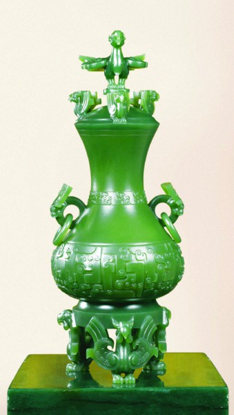 光福工艺文化城入口处,“玉韵春秋”是相当醒目的标识,那是玉雕名家马洪伟的工作室。 还在读书年代,画画是马洪伟最喜欢做的事情,看完《西游记》后他就能将小说里的人物画下来贴满家中的整面墙。正是有了这样一个兴趣爱好,他中学毕业后即赴东渚拜师学习玉雕,开始了三年的艺徒生活。苏作玉雕一直代表着中国玉石雕刻工艺的最高水平,从来都不乏名家和精品。如何在能人辈出、佳作纷呈的大环境里另辟蹊径,走出一条新的创作之路来,则是苏作玉雕艺人要面对的一个新挑战。“入行时学的是仿古器,仿得最多的是汉代古玉,”已从事玉雕行业近20年的马洪伟说,他每年都在玉雕的艺术之路上不断积累,探索着前行,但前进的步伐总觉缓慢,一直没有形成自己的玉雕风格。马洪伟始终认为,在当下的玉雕界,只有形成自己的风格,才能做出让业界和市场认可的作品。2008年的金融危机也波及到了马洪伟等诸多玉 雕从业者,他的业务陷入 了困 境。缺少了迎来送往的马洪伟也有了充足的时间来回顾和总结自身技艺特色和风格道路。经过一年多时间的犹豫和徘徊,一个偶然的因素激发了他的遐想。当他翻阅多年弃之一边的《青铜器图录》时,不由被其瑰异多彩的形制、繁缛精美的纹饰、富丽堂皇的气派所震撼。经过反复端详和揣摩,他感悟到,历史上不同时期的青铜器有着不同寻常的造型和纹饰,其背后隐藏着古人深邃的思想内涵、厚重的文化积淀和文化背景。将其再现在玉雕创作中,定会绽放出别样的精彩和光华,也完全有可能走出一条不同于他人而独具个性的错位发展之路。“玉器的器皿件种类不少,风格也蛮多,我喜欢青铜器仿古件就是因为其门类复杂,有挑战性,太简单的器型我觉得做起来没劲。”马洪伟从事仿青铜器重点是研究理解青铜器“玉化”,他喜欢以酒器及飞鸟走兽为主题创作青铜器玉雕。“将古韵和现代审美有机结合,采用古人的艺术构思、工艺特点以及雕琢技法等,将现代布局设计参透到传统题材中去,所创作品既有传统韵味,又有创新发展。不惟古,也不一味求新。”马洪伟对于自己的正确选择异常兴奋。 然而仿一件青铜器绝非易事,首先必须在脑子里有张清清楚楚的器形图,无论从哪个角度看,都要明明白白,这时才能画稿、开料拿形。为了熟悉青铜器的器形,他无数次地翻阅《中国青铜器全集》,上海、南京等周边城市只要有青铜器展,他便跑去看。 细赏他刚刚获得“子冈杯”金奖的作品《鸟兽纹觥》,战国晚期的器型,但又不是纯粹的模仿,精简后的纹饰经由阴阳细刻,突出了青铜的大器之美,玉料的选择则是和青铜色泽更为接近的青玉。凝望壶体鸟兽交织的纹样,泛着铜绿,承载了千年文化的青铜仿佛在时空交错的刹那间,从远古走来,从翩翩君子化作柔情温润的美娇娘。电光火石间,直教人沉醉于惊艳、细腻的视觉感触之中。 不仅仅是家门口的“子冈杯”,中国工艺美术大师精品博览会、“百花玉缘杯”中国玉石雕精品奖、中国国际文化艺术博览会“艺博杯”、中国玉石雕刻作品“天工奖”等各级各类大展上都有其摘金夺银的身影。一件件大气磅礴的青铜仿古件在马洪伟的吃苦耐劳中大放异彩,这显现了其独辟蹊径的选择。在他的作品中,既可以看到对于老一辈艺术家传统技艺的继承,又能发现年轻艺人力争自主创新的魄力,成为新一代玉雕师的典型代表。 |